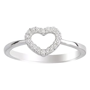 Promotion for 14k White Gold Diamond Heart Ring (1/8 cttw, H-I Color, I1 Clarity), Size 6